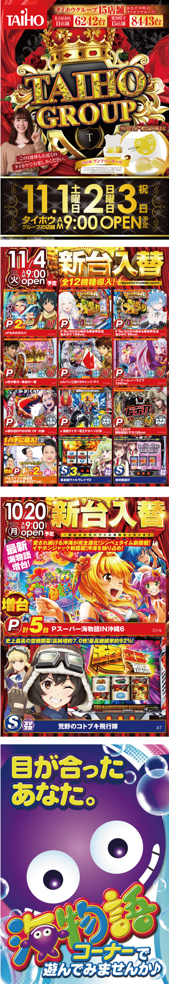 愛知県のパチンコ&スロット「タイホウグループ」|タイホウ篭山店のホームページ