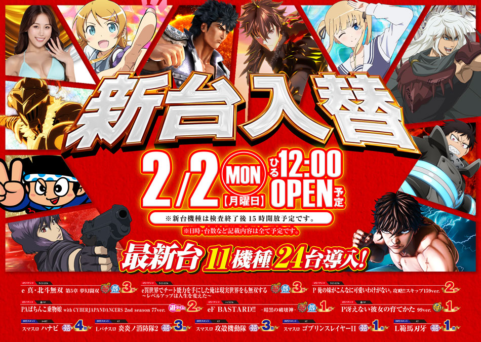2月2日(月)新台入替