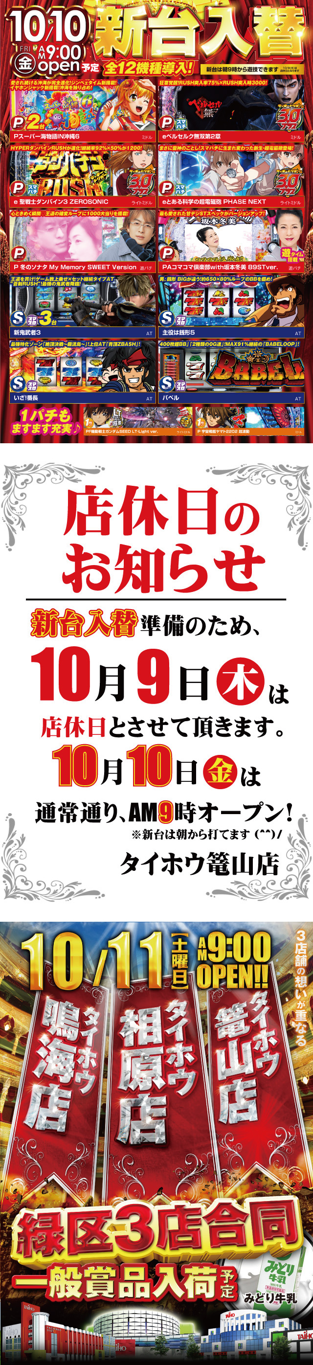 愛知県のパチンコ&スロット「タイホウグループ」|タイホウ篭山店のホームページ