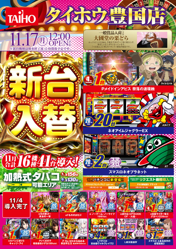 新台入替11月17日(月)12:00オープン!